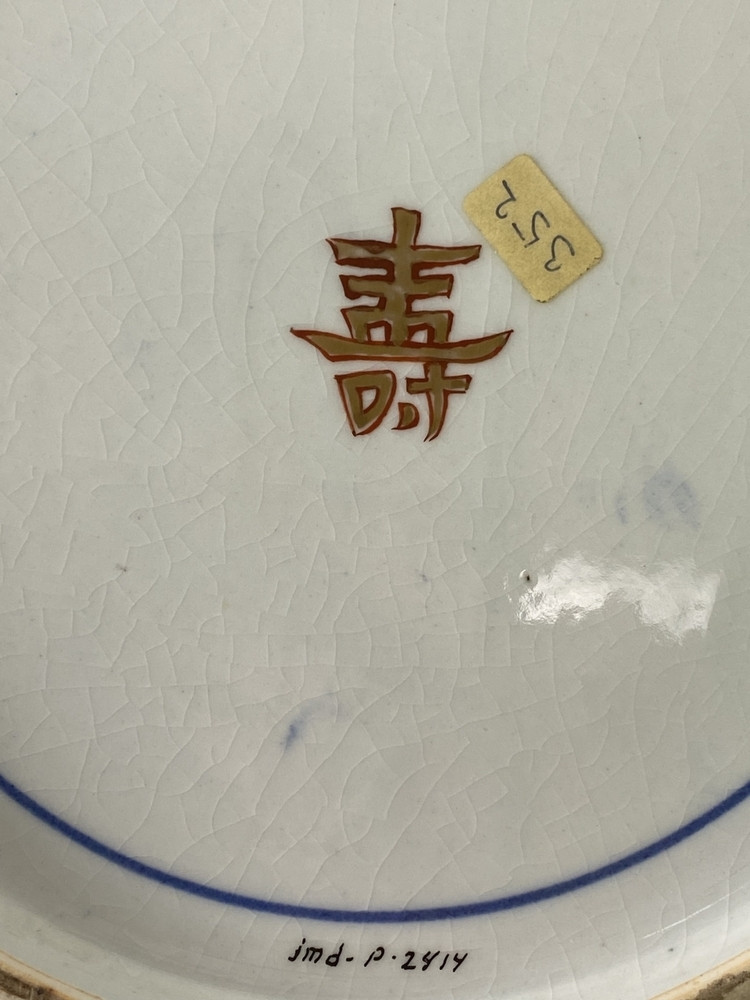 Deep dish on footring. Decorated in underglaze blue, iron-red, green, black and gold. In the centre a three-masted Dutch... to date due to the lack of documented pieces. In general, the relatively carefully painted pieces are dated...||JMD-P-2414