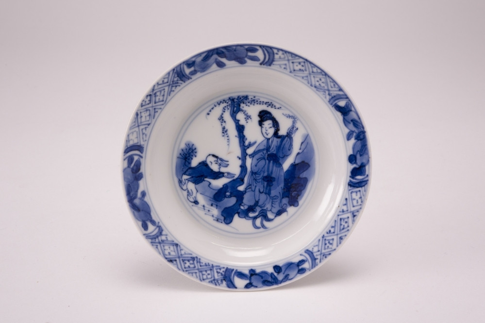 Pear-shaped bottle vase with flowering plants and dots in a panel decoration