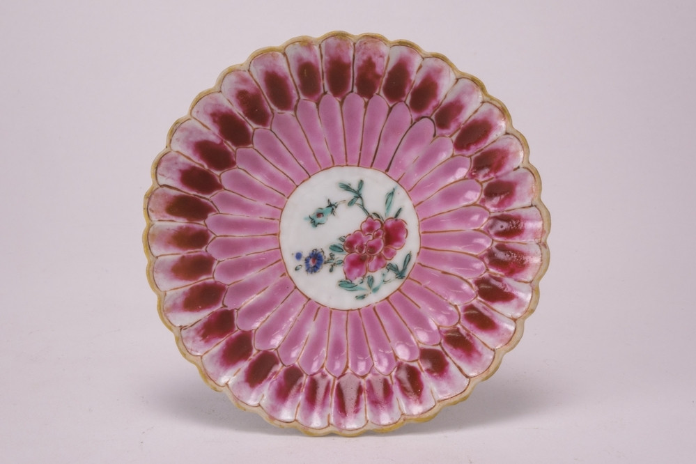Keramiekmuseum Princessehof Schotel, opgemoffeld in kakiemonstijl met bloeiende bamboe, twee vogels en een zeeslangachtige