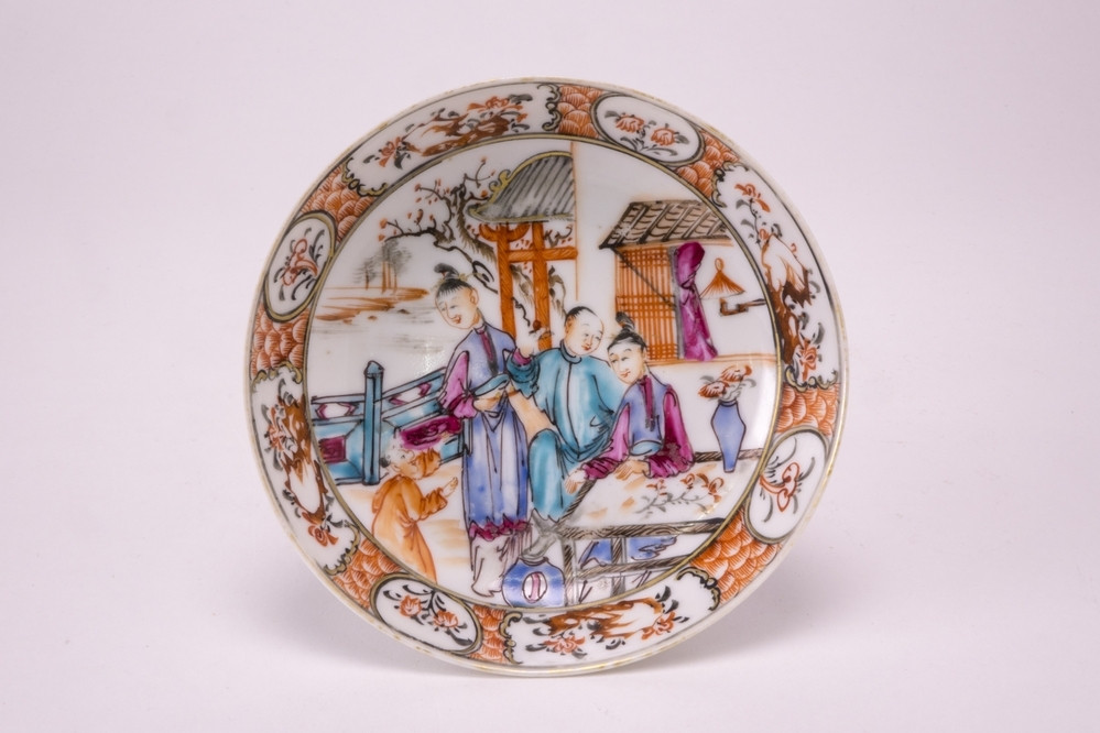 Schotel met polychroom floraal decor in Chinese imaristijl
