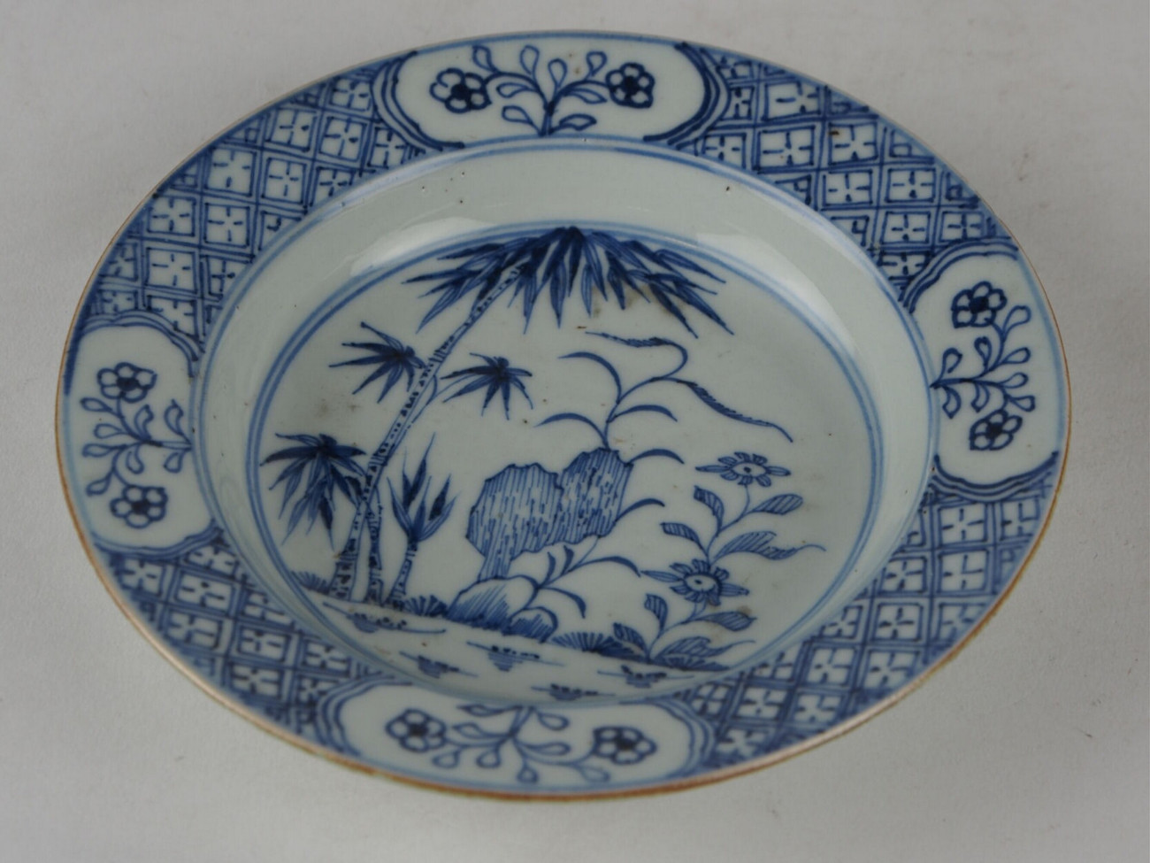 Keramiekmuseum Princessehof Kom met ingegrift decor van bloemranken, in het centrum een bloeiende plant en langs de binnenrand een geometrische band