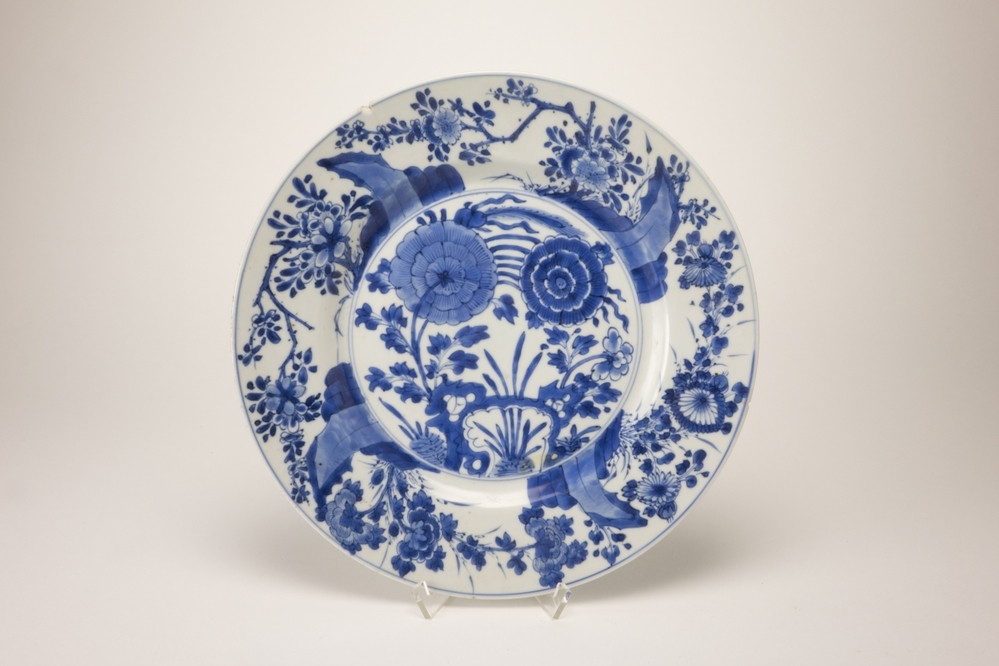Keramiekmuseum Princessehof Bord met decor van familiewapen, chine de commande, famille rose, melk en bloed