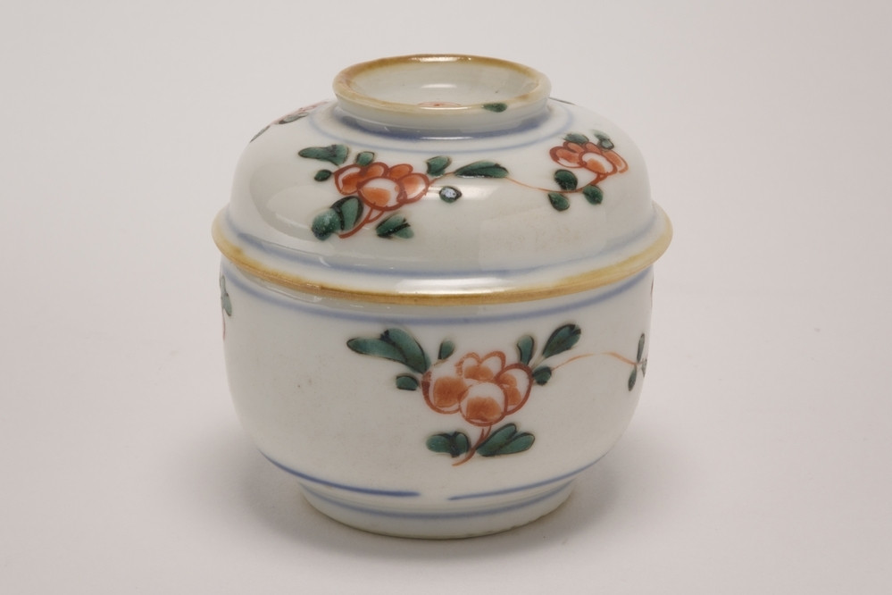 Keramiekmuseum Princessehof Scherf van schaal op dubbele standring met polychroom decor van bladeren en bloemen