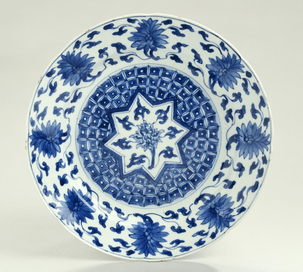 Keramiekmuseum Princessehof Bord met decor van drie figuren en appelboom, Appelplukker dan wel Cherrypicker, chine de commande, famille rose