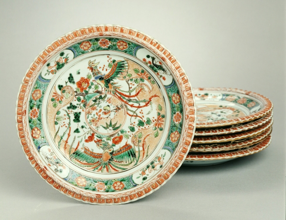 Keramiekmuseum Princessehof Kop en schotel met golvende rand en decor van bloem- en bladmotieven, 1 van 12