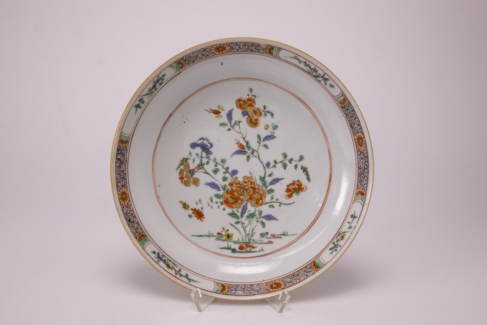 Keramiekmuseum Princessehof Kop en schotel met golvende rand en decor van bloem- en bladmotieven, 1 van 12