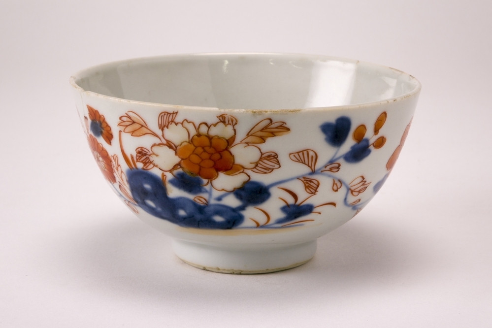 Beschilderde porseleinen theekom, onderdeel van een servies voor de rijstmaaltijd