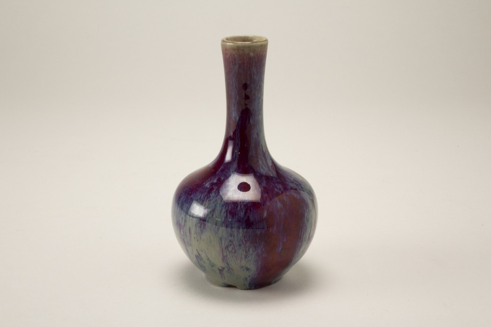 Keramiekmuseum Princessehof Wijnkan met tuit en houten stop, voorzien van gespikkeld en druipend bruin glazuur en decor van inscripties