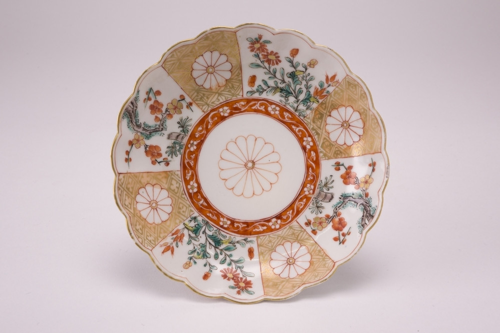Keramiekmuseum Princessehof Kop en schotel met decor van rotspartijen en bloemranken, famille verte, 1 van 5