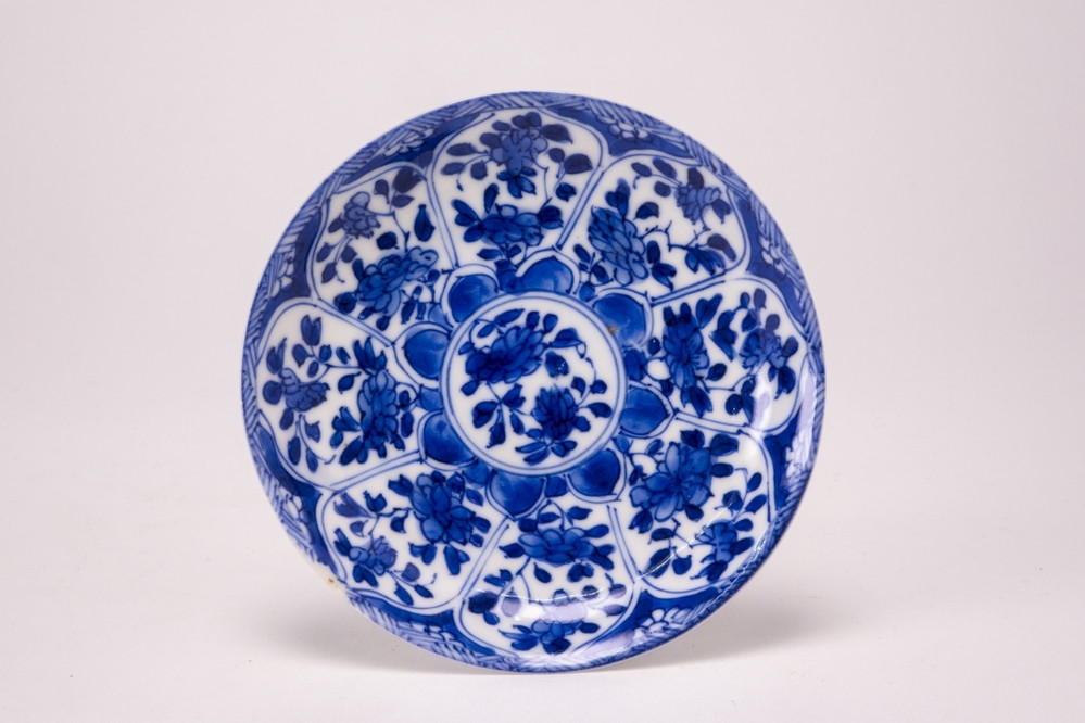 Keramiekmuseum Princessehof Kop en schotel met Europees rivierlandschap en figuren, chine de commande, famille rose
