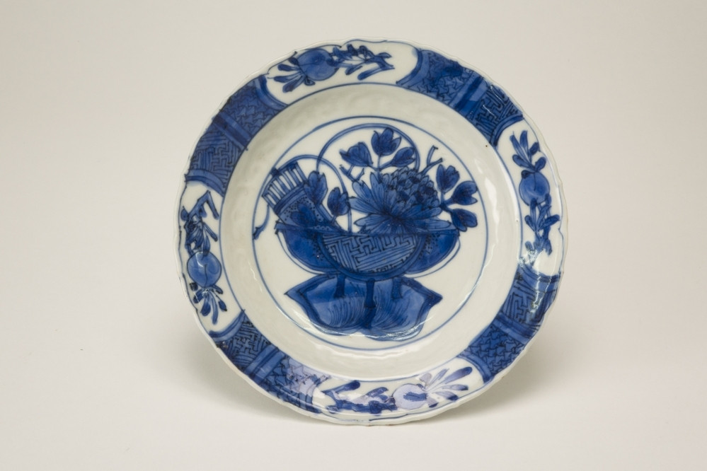 Keramiekmuseum Princessehof 4 borden met decor van 10 panelen in licht reliëf waarin lijzen en bloeiende planten