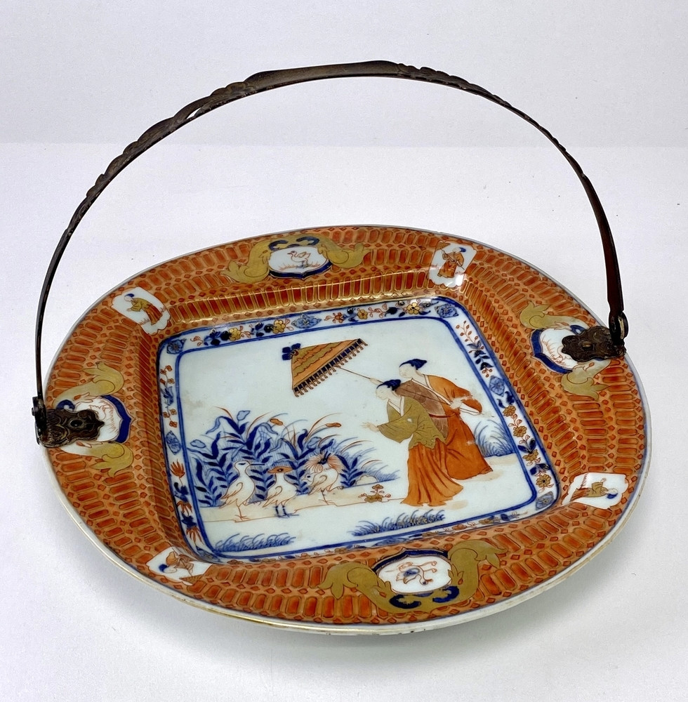 Keramiekmuseum Princessehof Miniatuurfles met decor van vakken waarin een lijs of een bloem in onderglazuur blauw