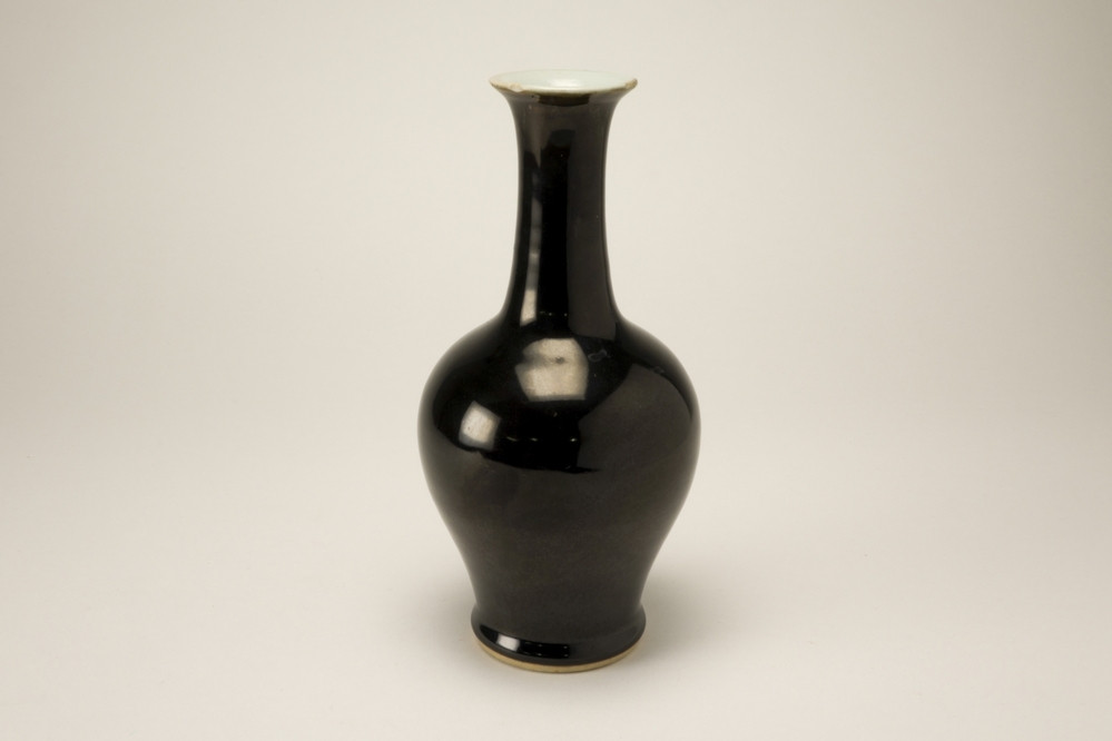 Keramiekmuseum Princessehof Beeld in de vorm een man in gebogen houding, gekleed in een groene mantel