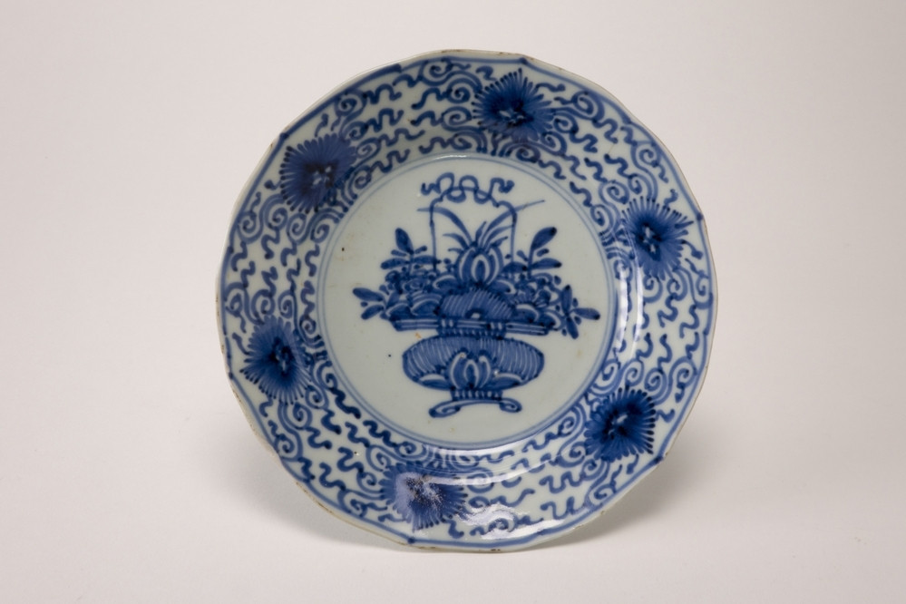 Keramiekmuseum Princessehof Bakje, vierkant, met gestileerd floraal decor en repeterende patronen op de rand, Kyoto yaki