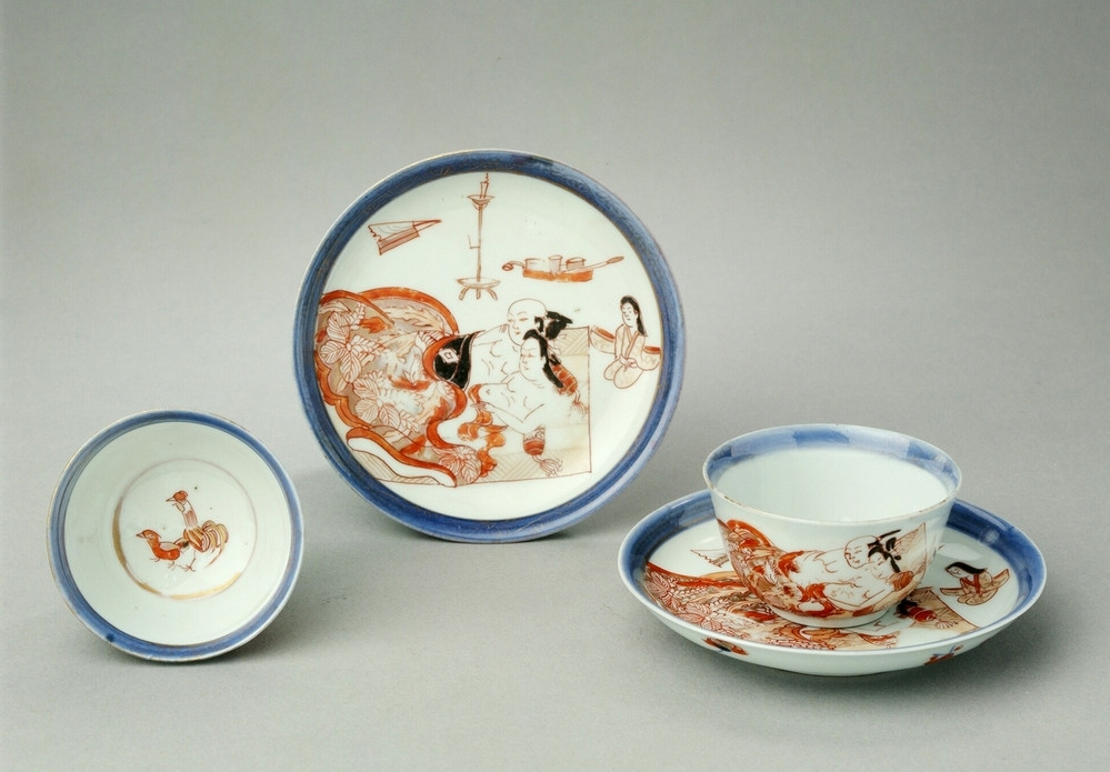 Kop, veelhoekig, met decor van panelen waarin bloemen en vogels