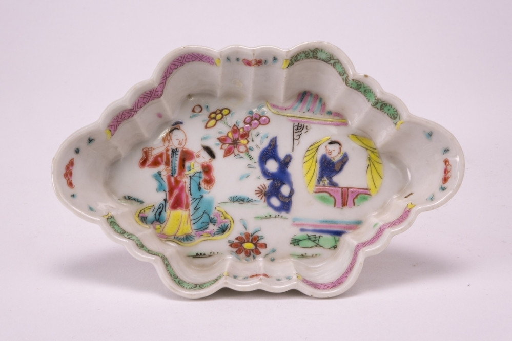 Keramiekmuseum Princessehof Kop en schotel met golvende rand en decor van bloem- en bladmotieven, 1 van 12