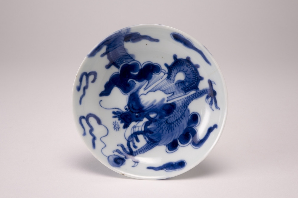 Keramiekmuseum Princessehof Schaal met decor van bagua of de Acht trigrammen en centraal een kraanvogel