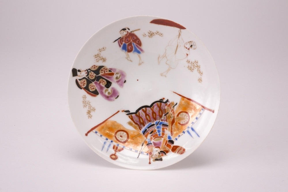 Keramiekmuseum Princessehof Schotel met decor van medaillon waarin een qilin omgeven door vogels en bloemranken, Swatow