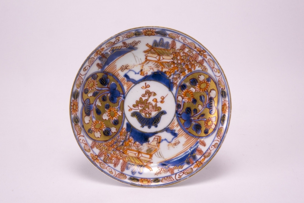 Rijksmuseum Amsterdam Plaque met een rivierlandschap met een paviljoen, bomen, bergen en een waterval