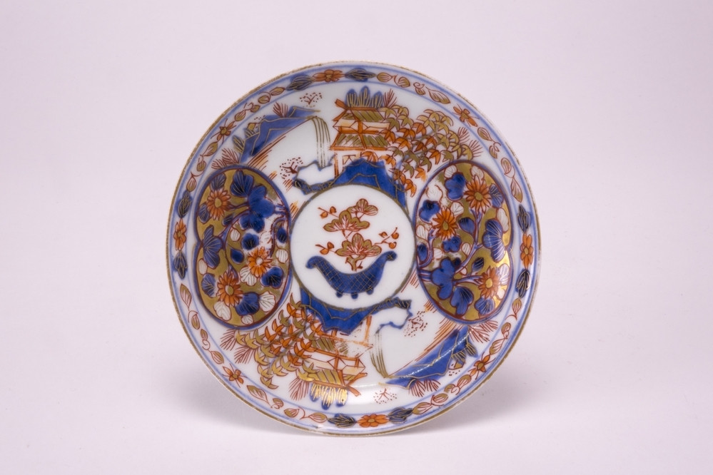 Keramiekmuseum Princessehof Bord met decor van pot met bloemen in famille verte binnen een brede ingegrifte witte rand