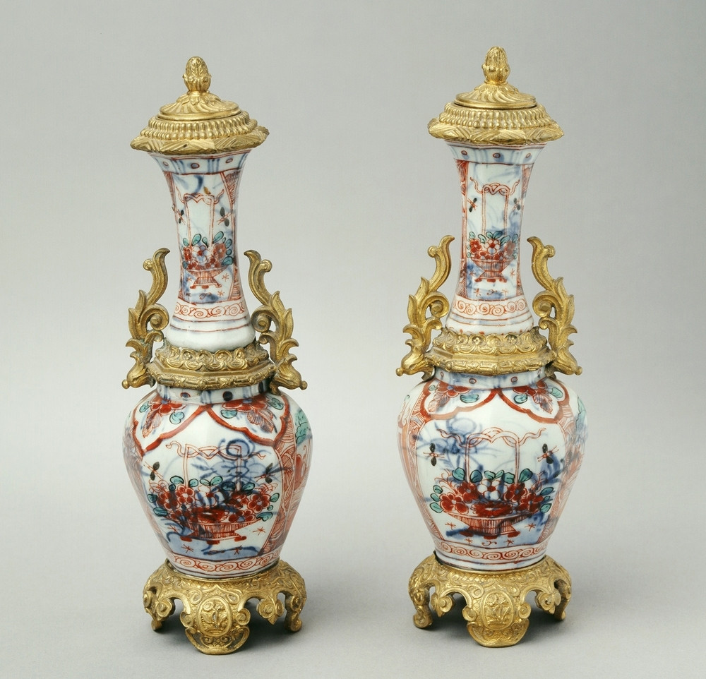Keramiekmuseum Princessehof Kaststel, achthoekig, met polychroom Imari-decor van geisha's in interieur